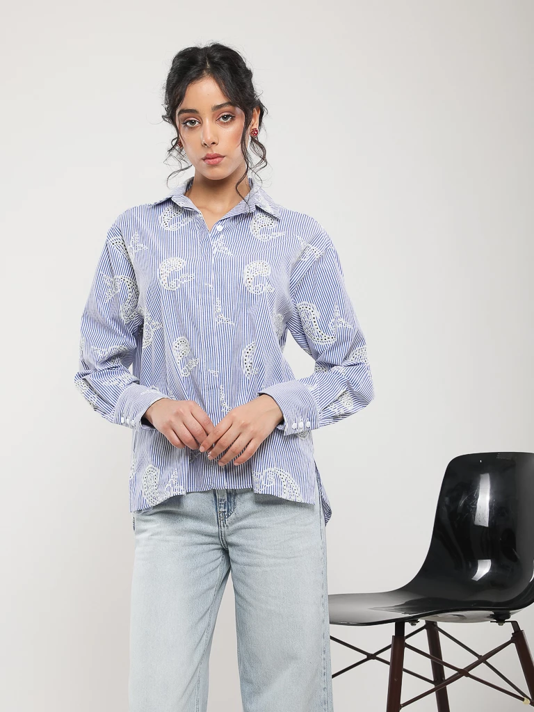 CHEMISE BRODÉE À RAYURES