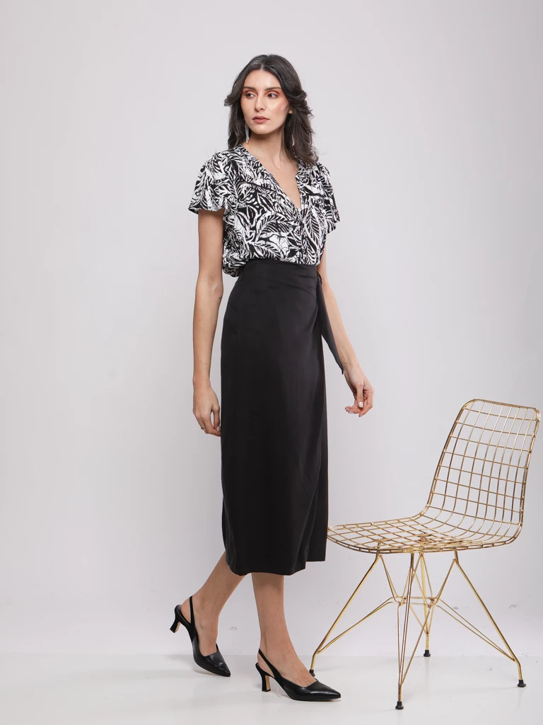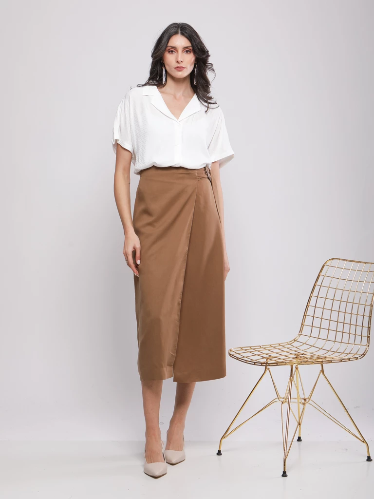 JUPE MIDI STRUCTURÉE À PANNEAUX CROISÉS