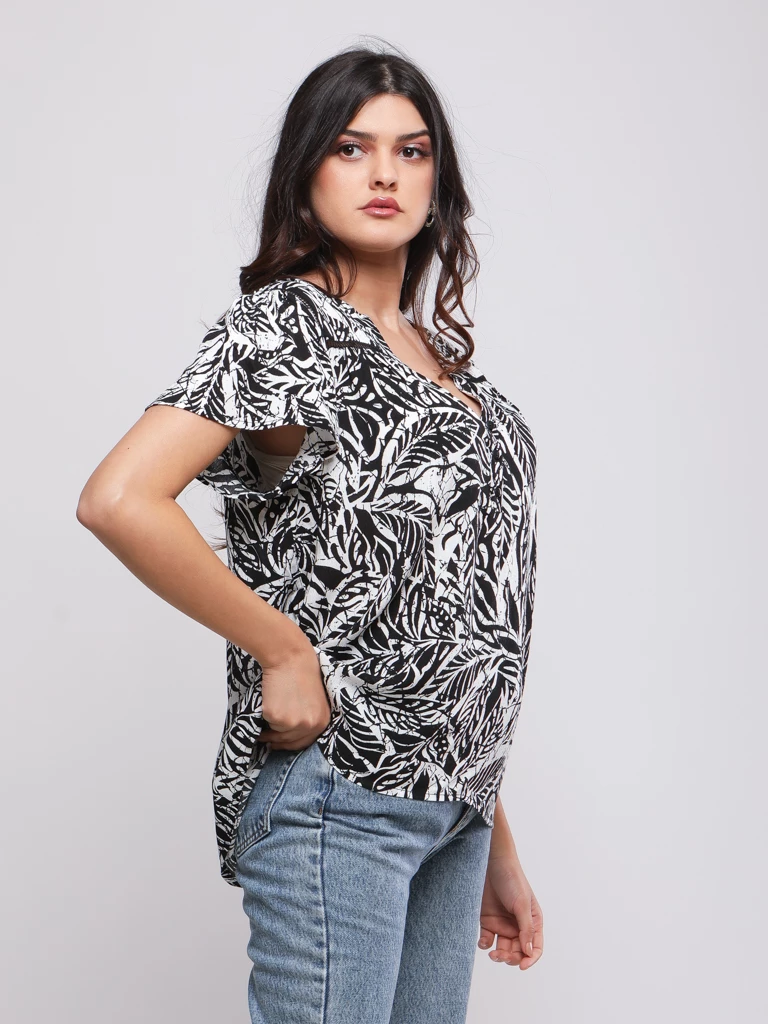 BLOUSE FLUIDE IMPRIMÉ TROPICAL
