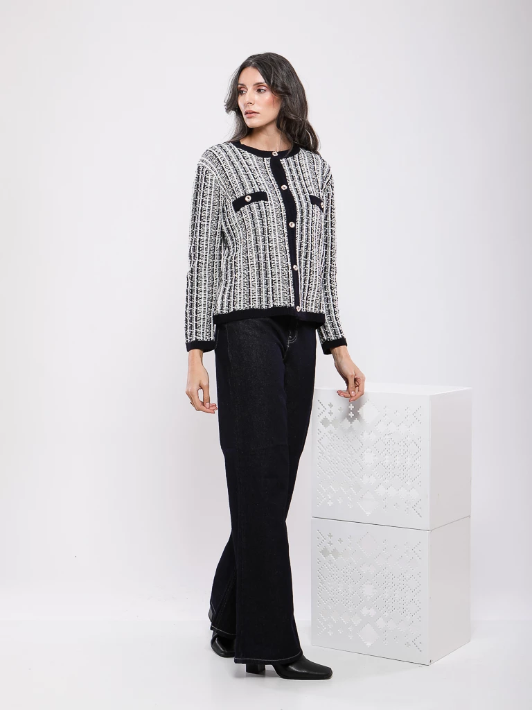 GILET EN MAILLE À CARREAUX MANCHES LONGUES