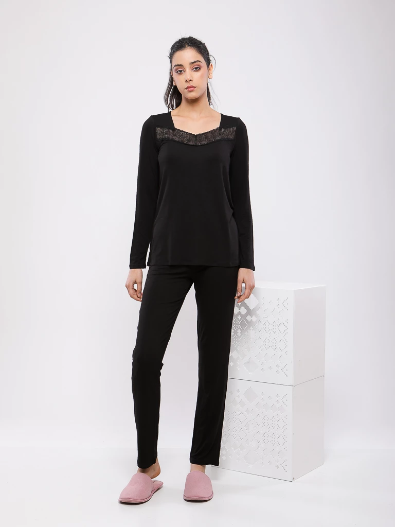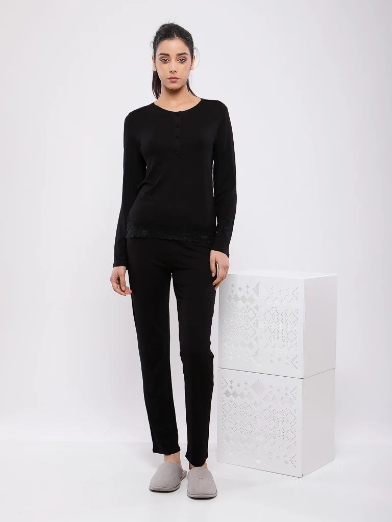 PYJAMA HAUT UNI BOUTONNE ET BAS IMPRIME