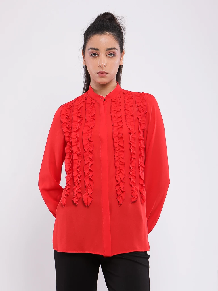 CHEMISIER BOUTONNÉ À VOLANTS SUR LE DEVANT