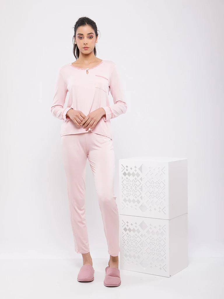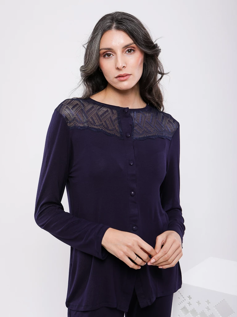PYJAMA A ENCOLURE DENTELEE ET BOUTONS FANTAISIE
